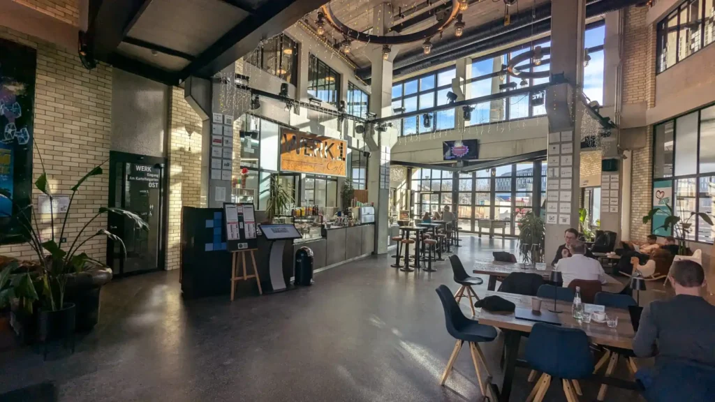 Das Training ist im WERK1 im Münchner Werksviertel. Die Gegend ist unheimlich kreativ und dynamisch, hat richtig gute Vibes und die Trainingsräume sind echt toll. Macht Spaß hier.